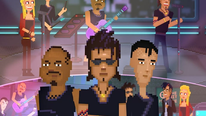 MIKE: Hello! It came from a love of all these areas and naturally the project developed into an amalgamation of my various passions! Growing up, the aesthetic of cyberpunk captured my imagination ever since discovering a 90’s anime called Cyber City OEDO 808. Gaming-wise, I was brought up on the classic games, particularly adventure games so pixel art has a special place in my heart. As well as having a nostalgic quality, it’s a very unique art style and encourages the viewer to use their imagination filling in the scenes. And music is a very big thing in my life. There’s been movies and series like Scott Pilgrim, Metalocalypse, Nana and others based on a single fictional band with original music written for them. I wanted to put my own stamp on this, writing songs for various fictional characters exploring their perspectives and styles. Throw in some comedy and cultural commentary and you have X-RL7.